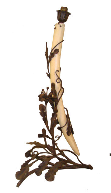 TRAVAIL FRANCAIS 1930. DEFENSE EN IVOIRE ORNEE D'UNE STRUCTURE EN FER FORGE.