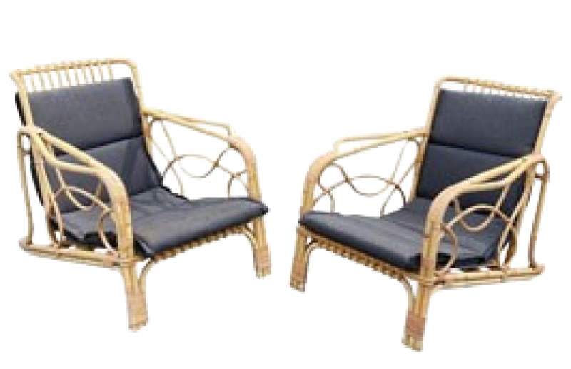 2 FAUTEUILS EN ROTIN ET BAMBOU CIRCA 1970. 2 JEUX DE COUSSINS. MOD 1441 DIMENSIONS EN CM Hauteur 73 Largeur 73 Profondeur 88 Diamètre Hauteur assise 28 Retour SaveSaveSaveEnregistrer