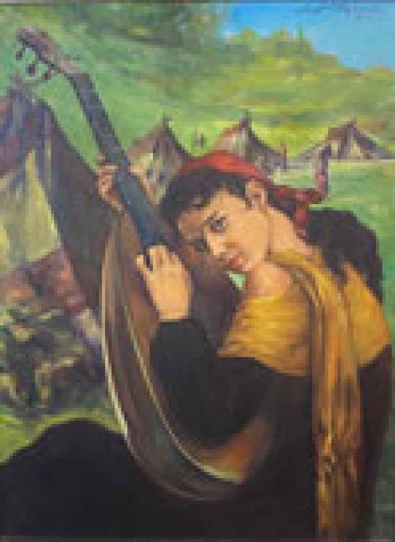 Gitane à la mandoline, daté 1967. Signature à déchiffer.