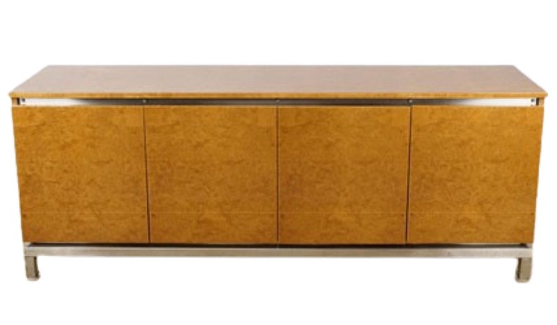 Guy Lefevre, Enfilade En Loupe d'Orme, Sur Piètement En Acier Circa 1970