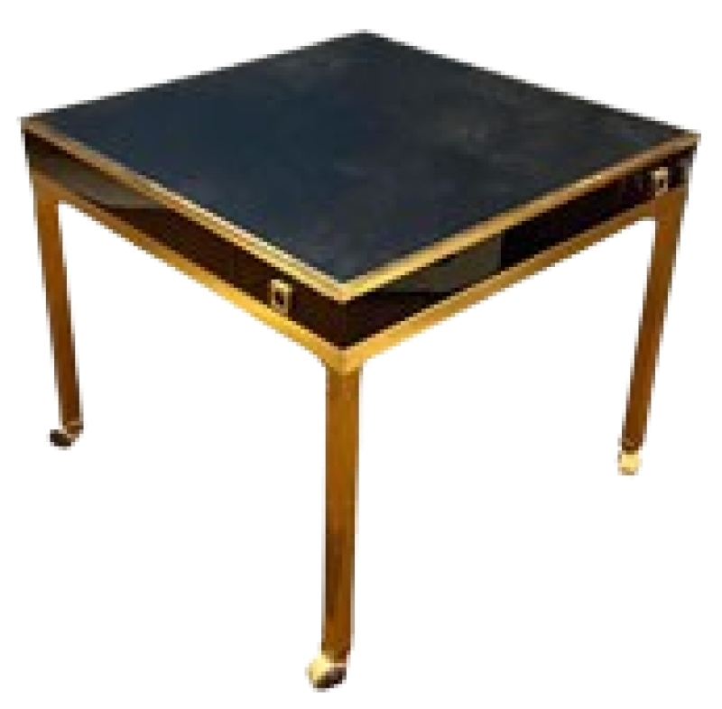 MOD 1846 Guy LEFEVRE, table de jeu en laiton, bois laqué et similicuir