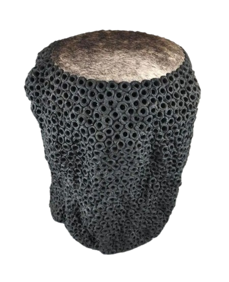 MOD 2043 Gilles CAFFIER tabouret en céramique, dessus en peau