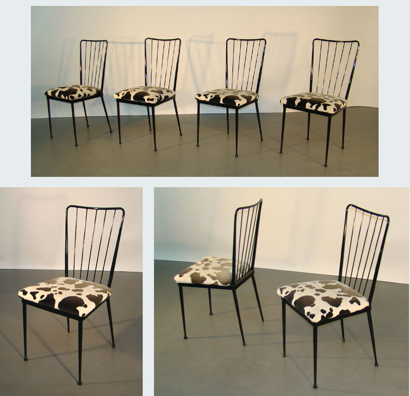 MOD 324 COLETTE GUEDEN, SUITE DE 4 CHAISES EN METAL LAQUE, ASSISE RECOUVERTE DE MOUSSE ET TISSU Featured