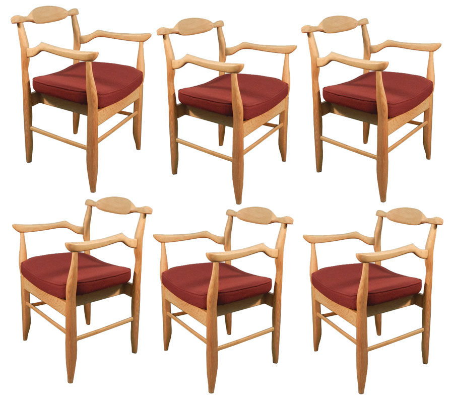 MOD 812 GUILLERME ET CHAMBRON, SUITE DE 6 FAUTEUILS BRIDGES MODELE FUMAY EDITION VOTRE MAISON 1960