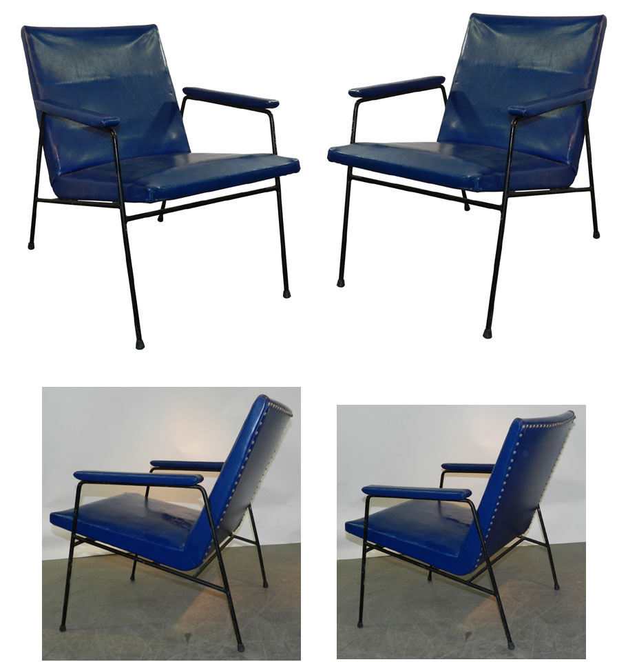 TRAVAIL FRANCAIS OU ITALIEN, PAIRE DE FAUTEUILS 1950 A STRUCTURE EN METAL LAQUE, REVETEMENT EN SKAI
