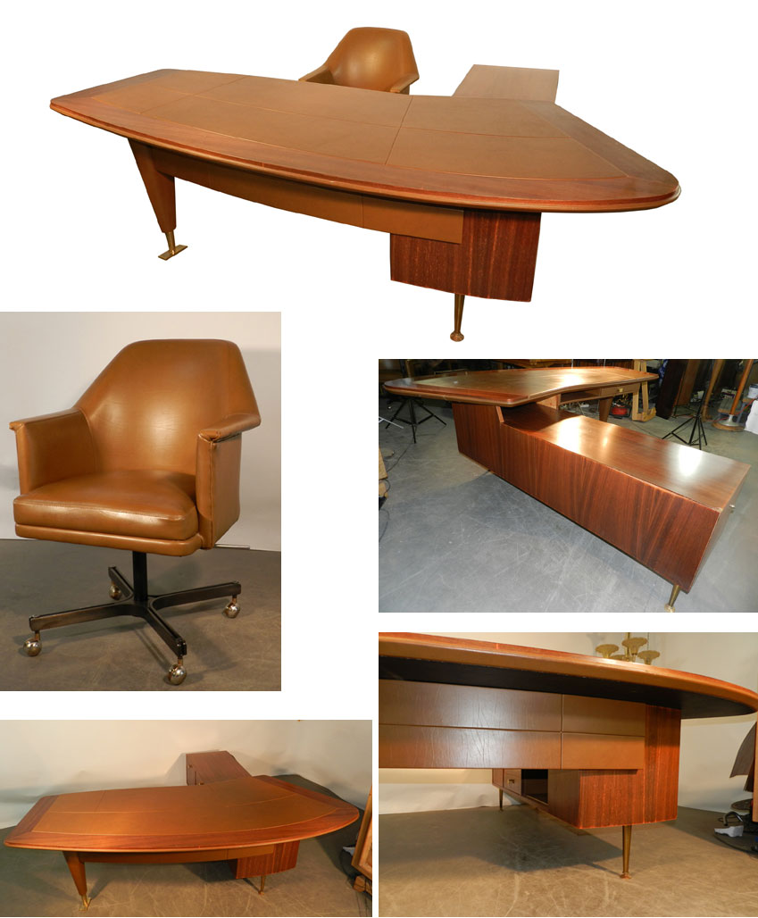 Raphael (Attribué à) Grand Bureau 1960 MOD 705 DIMENSIONS EN CM Hauteur 77 Longueur 238 Largeur 208 Diamètre Hauteur assise Retour
