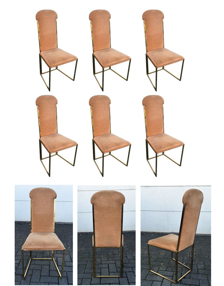 Willy Rizzo, 6 chaises en métal et chrome doré. MOD 923 DIMENSIONS EN CM Hauteur Longueur Largeur Diamètre Hauteur assise Retour SaveSave
