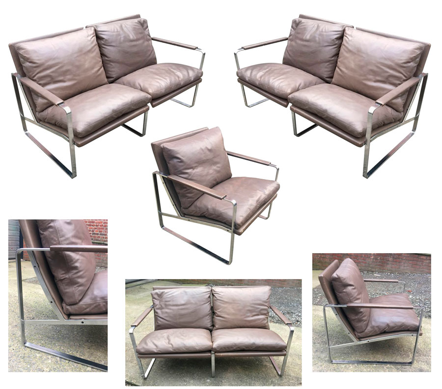 Preben Fabricius & Jørgen Kastholm, deux canapés 2 places et un fauteuil en cuir. Walter Knoll edition.