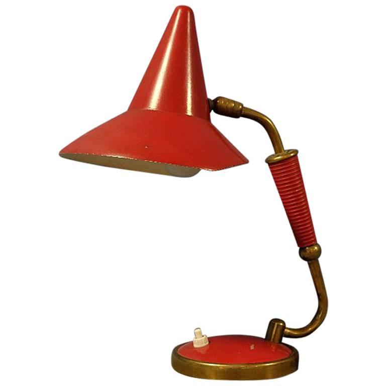 MOD 1109 Lampe en métal laqué et laiton vers 1950.