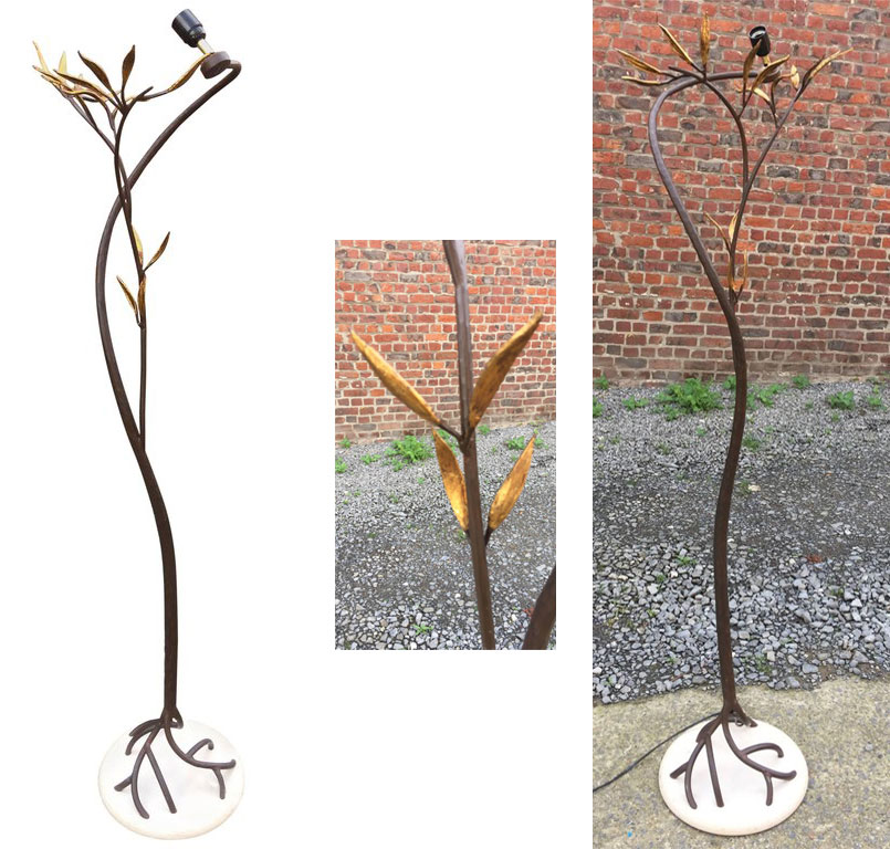 Lampadaire en métal doré et travertin, socle en marbre vers 1970. Abat-jour manquant. MOD 11210 DIMENSIONS EN CM Hauteur 182 Largeur Profondeur Diamètre 50 Hauteur assise Retour SaveSaveSaveEnregistrer