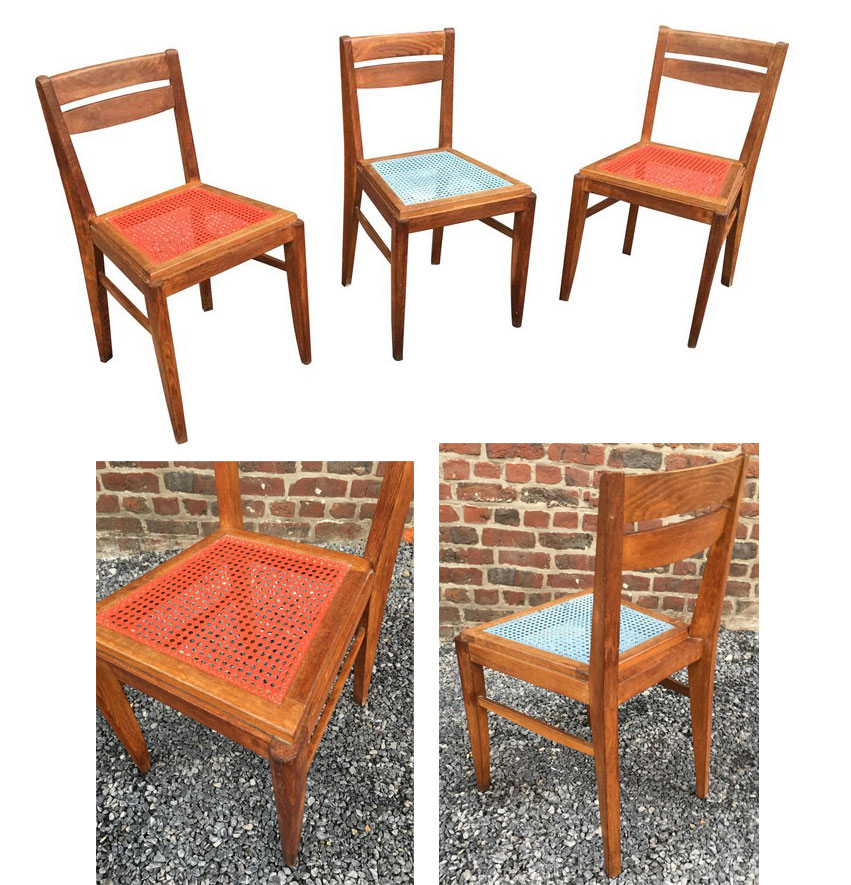 MOD 1155 Dans le style de René Gabriel, trois chises en chêne vers 1950