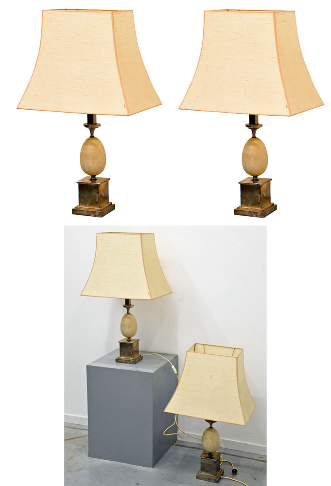 MOD 1219 Philippe Barbier Paire de lampes en acier et travertin