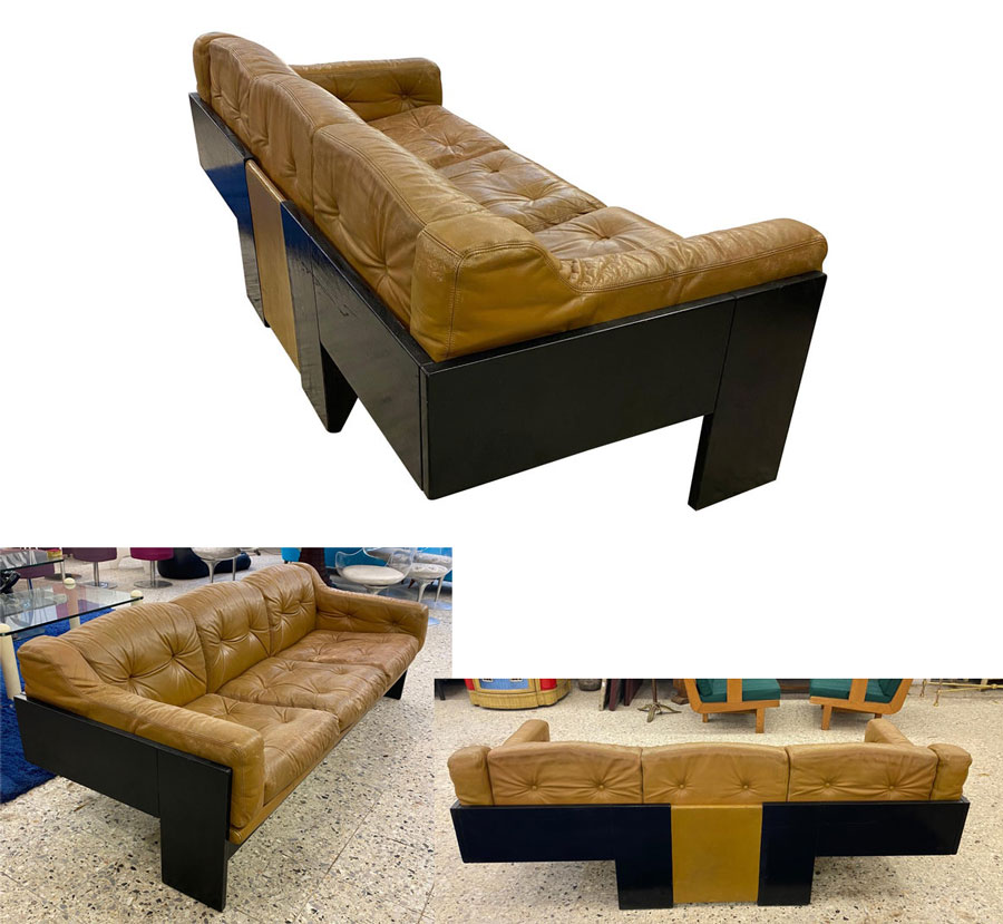 Dans le style de Claudio Salocchi canapé en bois laqué et cuir vers 1960.
