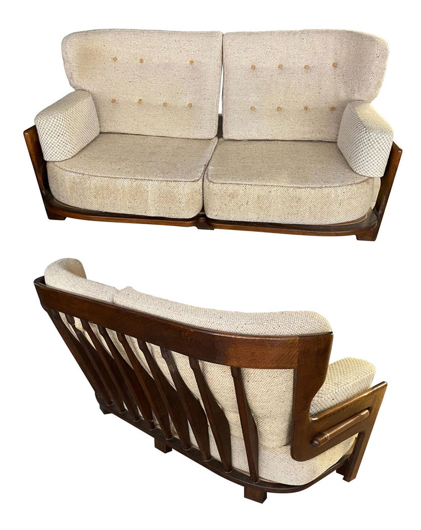Guillerme et Chambron, banquette Denis en chêne vers 1970. Edition Votre Maison MOD 1311 DIMENSIONS EN CM Hauteur 77 Largeur 164 Profondeur 90 Diamètre Hauteur assise 33 Retour SaveSaveSaveEnregistrer