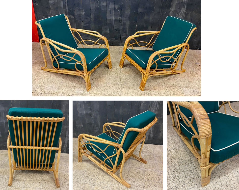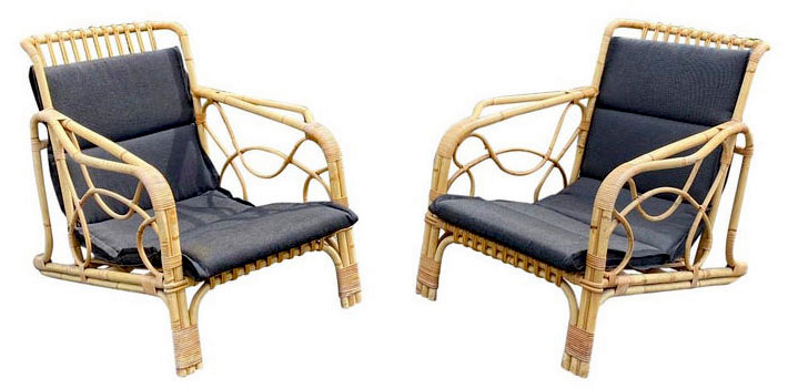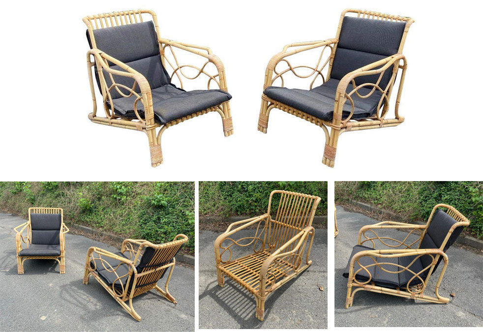 2 FAUTEUILS EN ROTIN ET BAMBOU CIRCA 1970. 2 JEUX DE COUSSINS. MOD 1441 DIMENSIONS EN CM Hauteur 73 Largeur 73 Profondeur 88 Diamètre Hauteur assise 28 Retour SaveSaveSaveEnregistrer