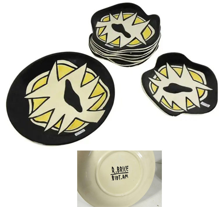 Roland Brice ( Fernand Leger) Ensemble De 8 Assiettes Et Un Plat En Céramique Circa 1950 MOD 1452 DIMENSIONS EN CM Hauteur Largeur Profondeur Diamètre Hauteur assise Retour SaveSaveSaveEnregistrer