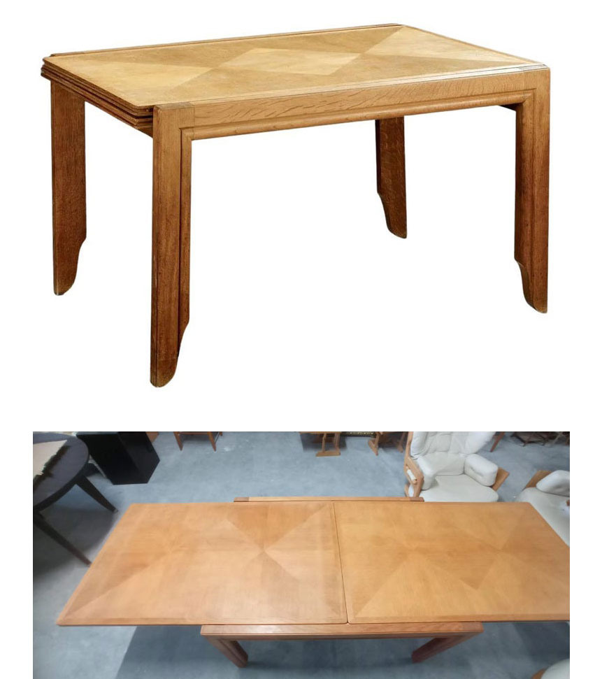 ROBERT GUILLERME ET JACQUES CHAMBRON, rare table en chêne modèle Calvados. Edition Votre Maison 1960