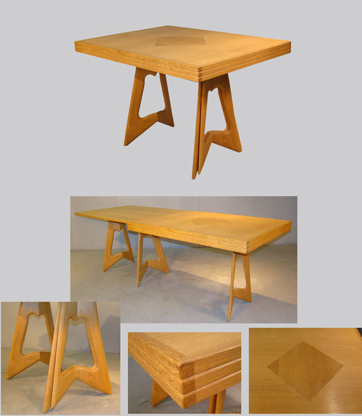 ROBERT GUILLERME ET JACQUES CHAMBRON, TABLE A EXTENSION "FANETTE" EN CHENE CIRE, EDITION VOTRE MAISON 1960
