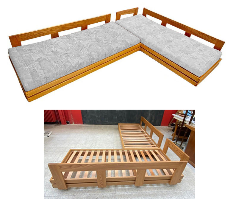 MOD 1551 Maison Regain Grand Canapé d'Angle En Orme Circa 1970