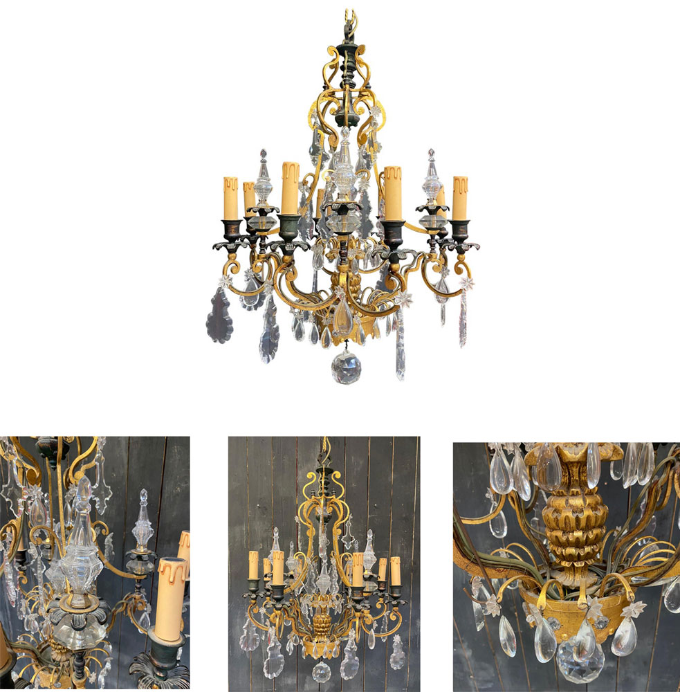 MOD 1561 Maison Baguès, grand lustre en cristal et bronze Featured