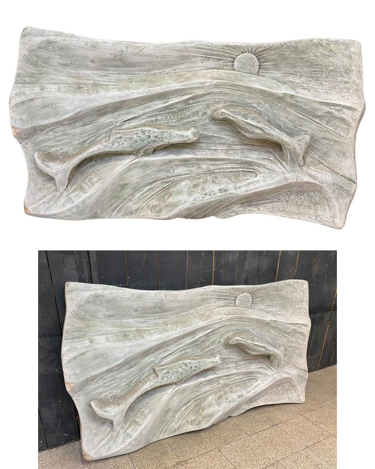 Roger Desserprit  sculpture en ciment signée, monogrammée RD et datée 1962