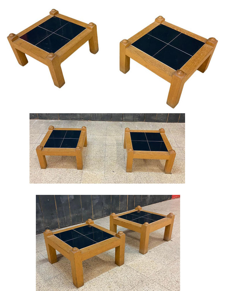 Guillerme et Chambron, paire de bouts de canapé en chêne et céramique. Edition Votre Maison