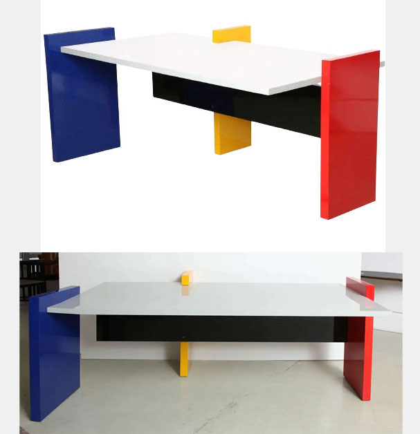 Danilo Silvestrin, bureau en bois laqué Hommage à Mondrian, Edition Rosenthal, Allemagne 1983