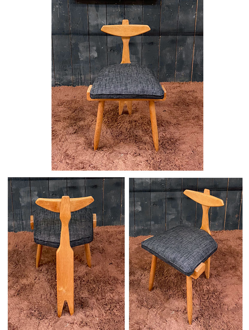 MOD 16711 Guillerme Et Chambron, chaise Tripode en chêne circa 1970 Featured