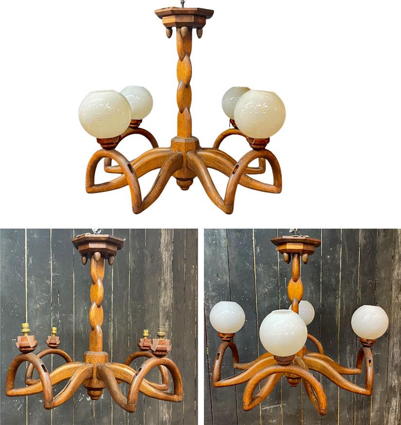 MOD 1681 Guillerme et Chambron, lustre en chêne et opaline Featured