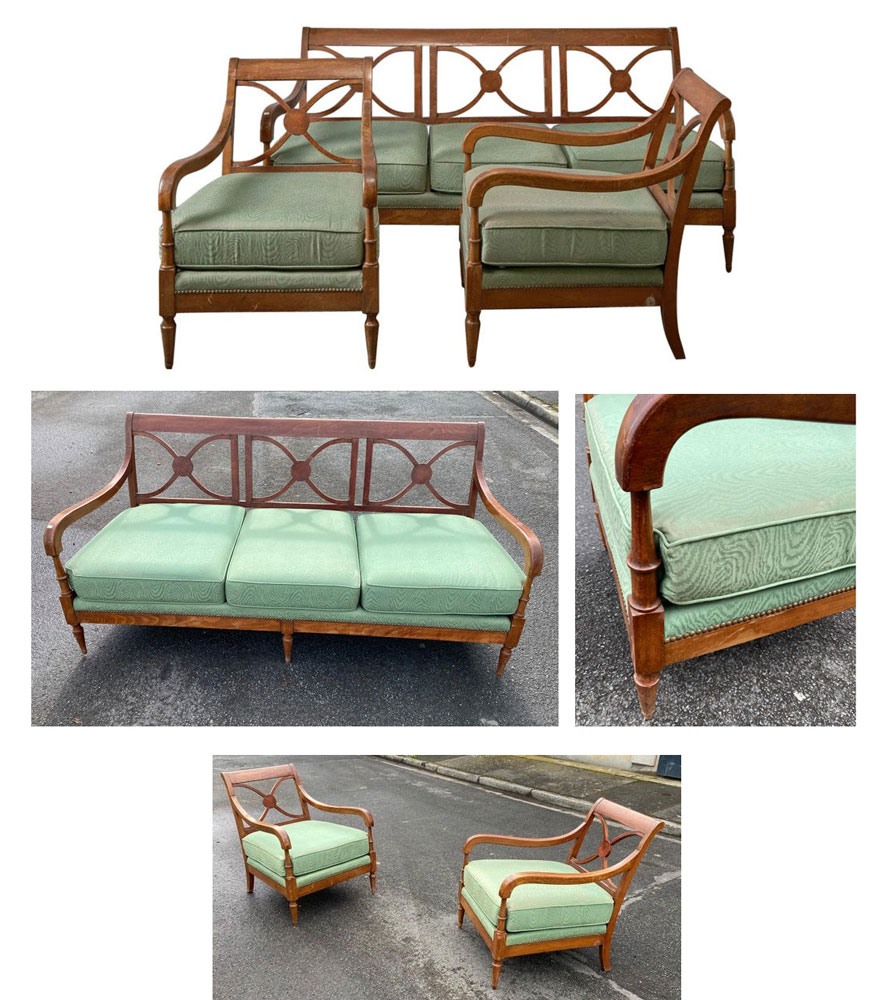 MOD 17110 Maison Jansen salon composé d'une banquette et de 2 fauteuils.