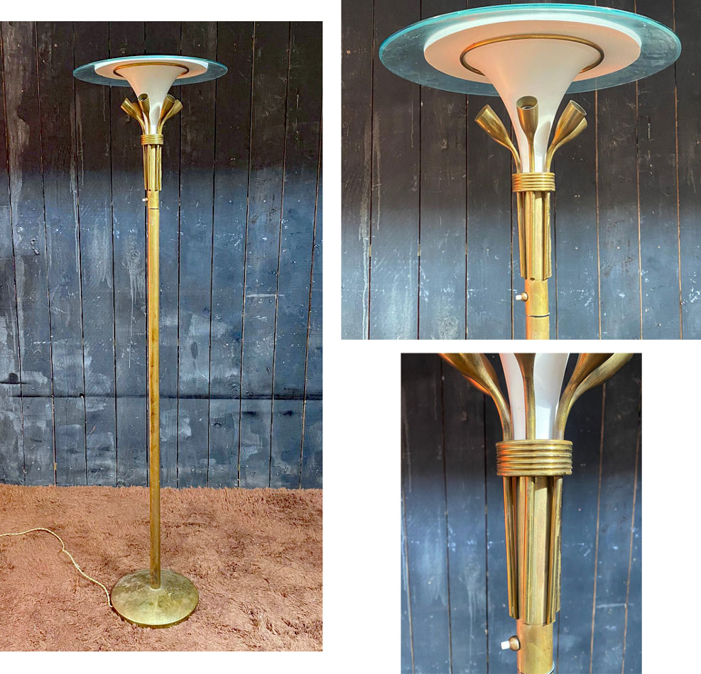 MOD 1744 Lampadaire italien en métal laqué, laiton et verre circa 1950.