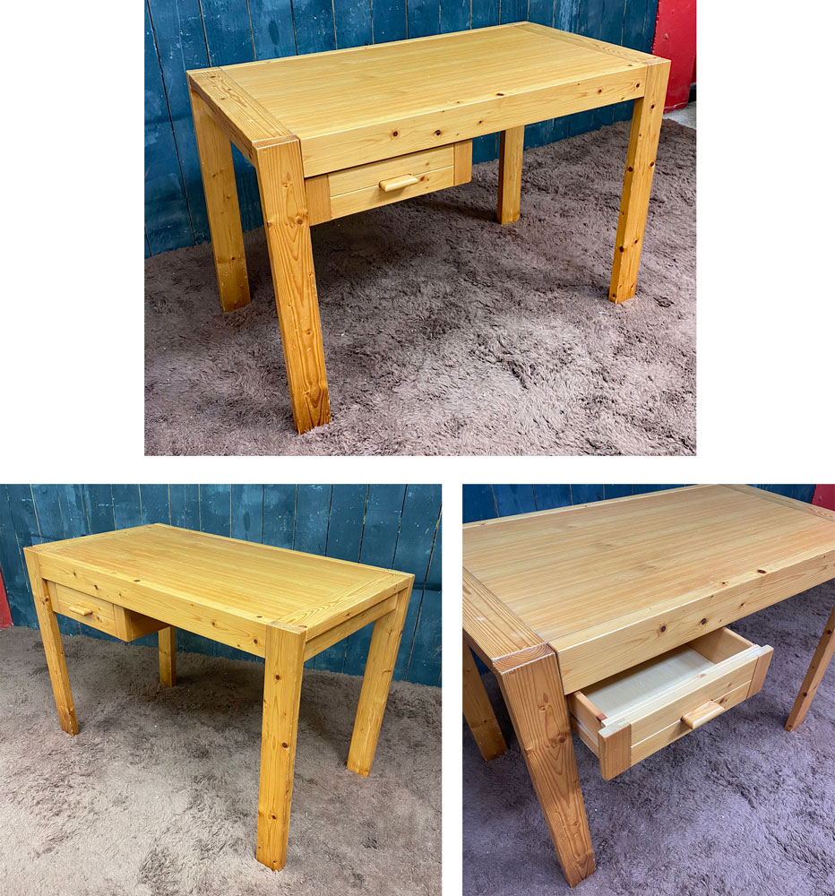 Petit bureau en sapin circa 1950 MOD 1747 DIMENSIONS EN CM Hauteur 73 Largeur 110 Profondeur 60 Diamètre Hauteur assise Retour SaveSaveSaveEnregistrer