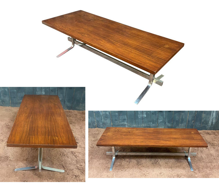 MOD 1754 Table de salon en placage de palissandre et acier poli