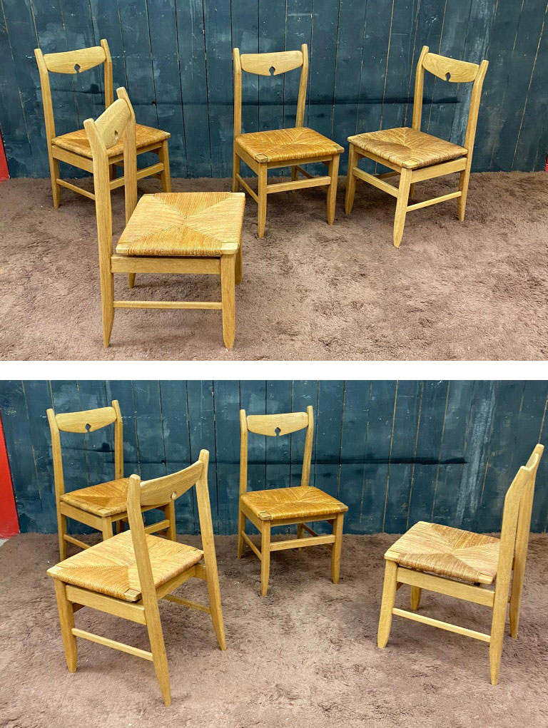 Guillerme et Chambron série de 4 chaises en chêne 1960. Edition Votre Maison