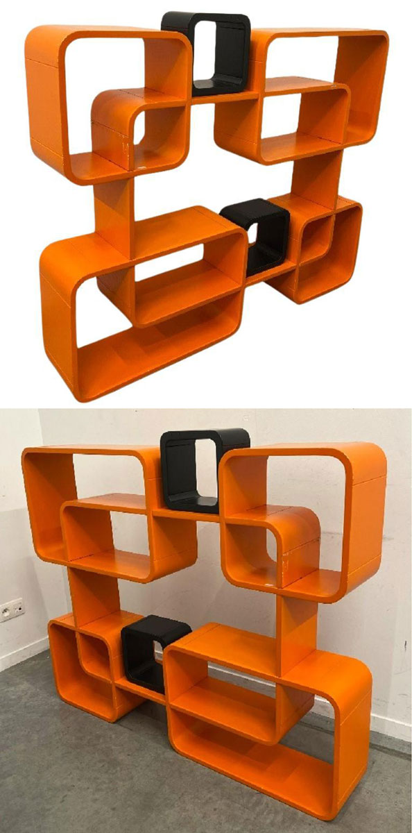 MOD 1822 Pop Design, Grande étagère Originale Modulable En Bois Laqué Circa 1960