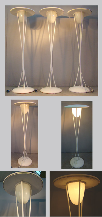 Moderne213 SUITE DE 3 HAUTS LAMPADAIRES DE JARDIN EN METAL LAQUE, GLOBES EN VERRE OPALESCENT Featured